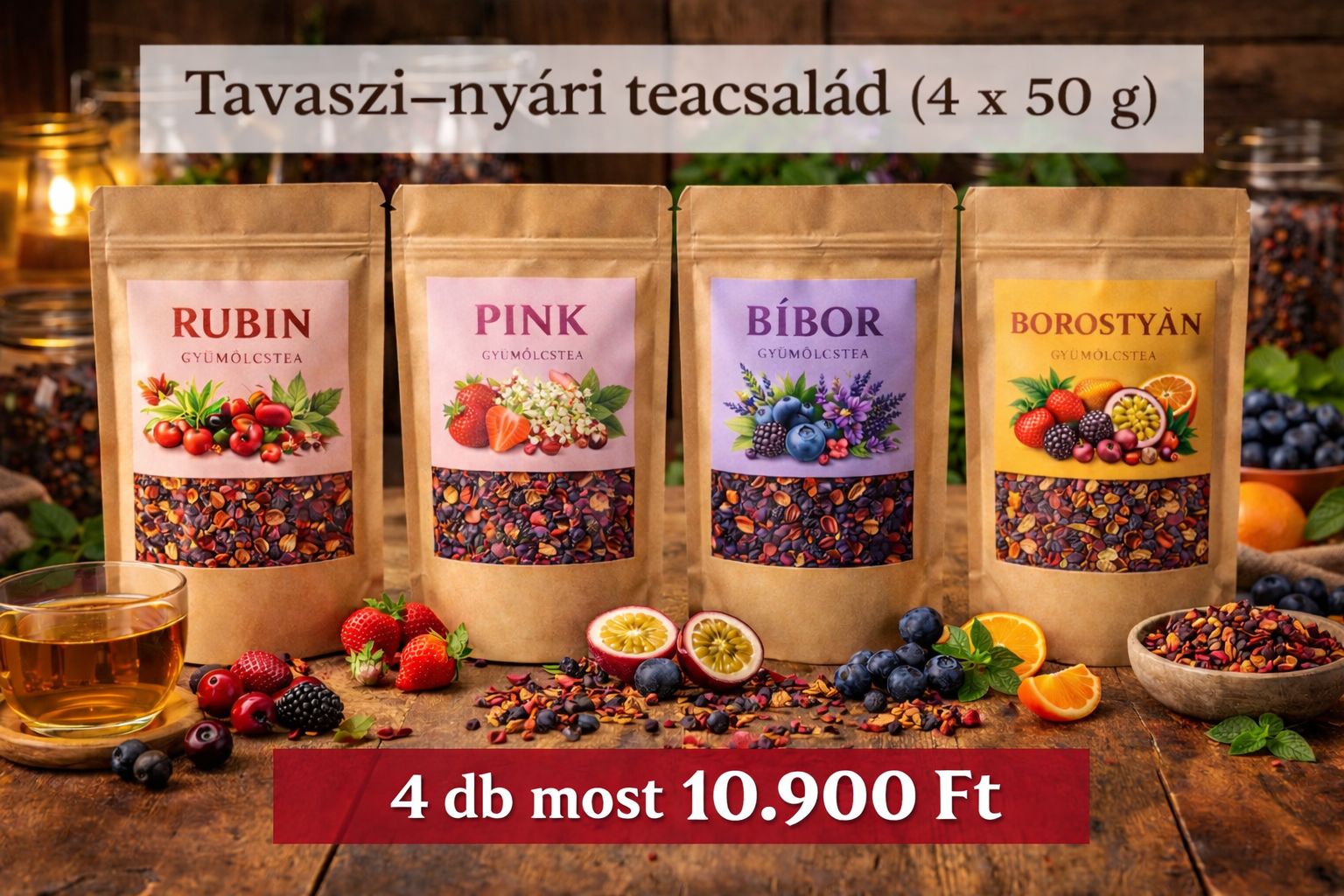 A kollekció minden tagja kizárólag természetes alapanyagokból készül, hozzáadott aroma, mesterséges ízesítő, színezék és tartósítószer nélkül. Az ízt és illatot valódi gyümölcsök, virágok és gyógynövények adják.